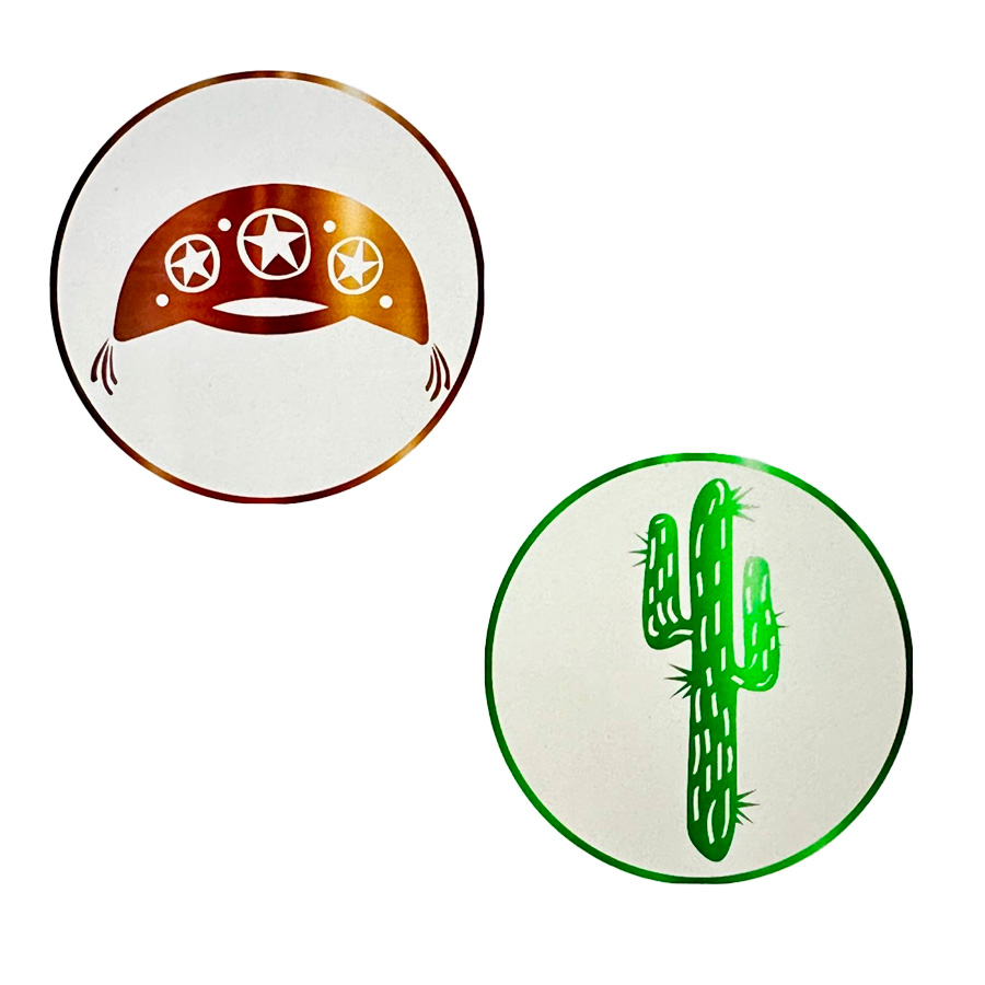 O Adesivo "Chapéu + Cacto" - Ref.2215 com Hot Stamping é perfeito para adicionar um toque especial às suas decorações de festa junina. Este pacote inclui dois modelos de adesivos temáticos. O primeiro adesivo apresenta um chapéu gaúcho, representando a tradição e cultura das festas juninas. O segundo modelo destaca um cacto, elemento típico das celebrações do sertão.