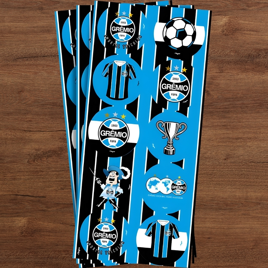 Além de decorar, o adesivo facilita a personalização de itens, tornando-os mais exclusivos e alinhados ao tema da comemoração. Com 4x4cm, ele se adapta a diferentes superfícies, sendo ideal para torcedores de todas as idades que desejam destacar sua paixão pelo Grêmio de forma criativa e elegante.