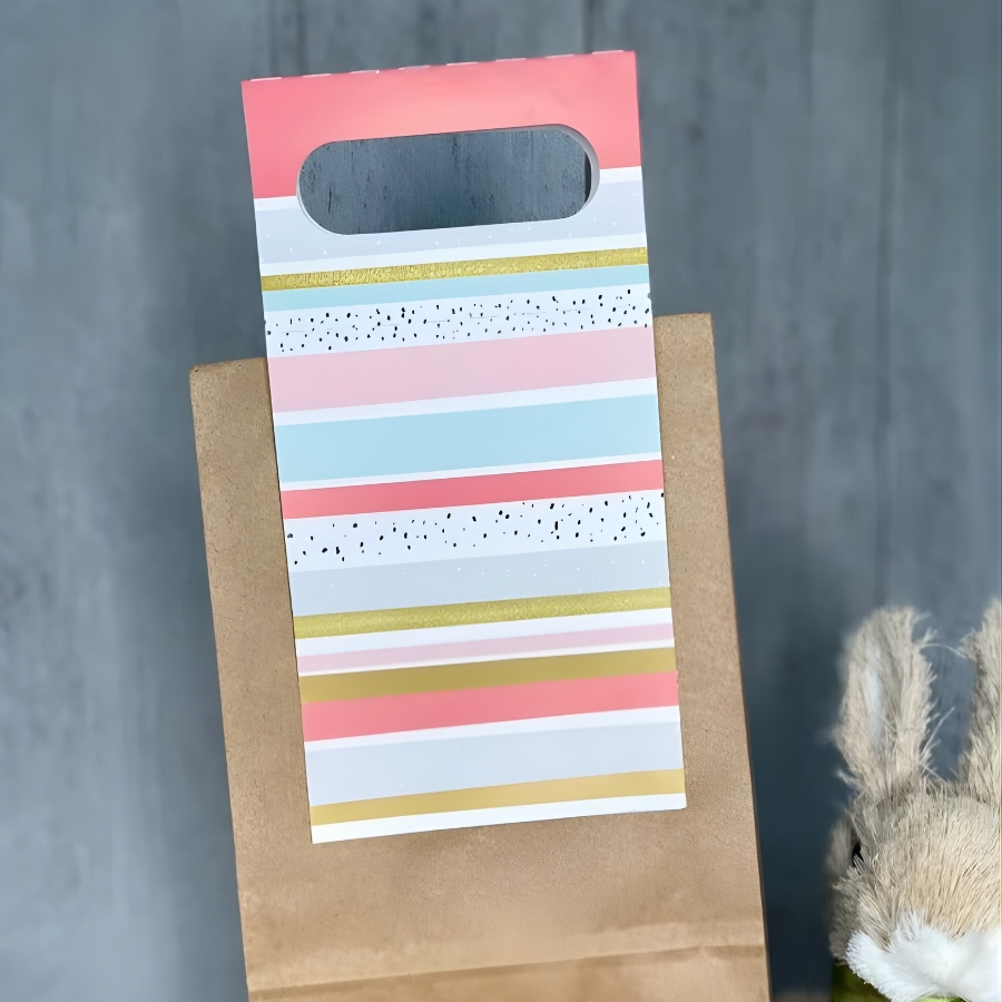 A Alça Decorativa Listras Coloridas - 12,8x51cm é leve, resistente e fácil de aplicar. Seu design colorido proporciona charme e destaque, sendo ideal para complementar embalagens temáticas, presentes personalizados e projetos artesanais criativos.
