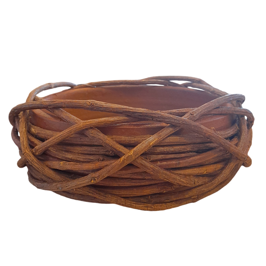 Esta bacia de cerâmica marrom, com dimensões de 26x8,5cm, é habilmente decorada com cipó artificial rústico que contorna sua borda, criando uma peça que exala um charme natural e artesanal. A união da cerâmica com o cipó confere à bacia um estilo rústico e acolhedor, ideal para compor ambientes com um toque de rusticidade.