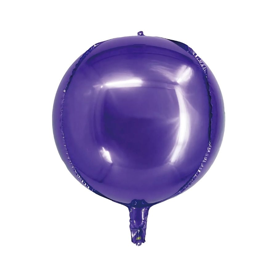 Balão redondo metalizado 4D roxo, 14" (36cm), perfeito para festas e decorações temáticas.