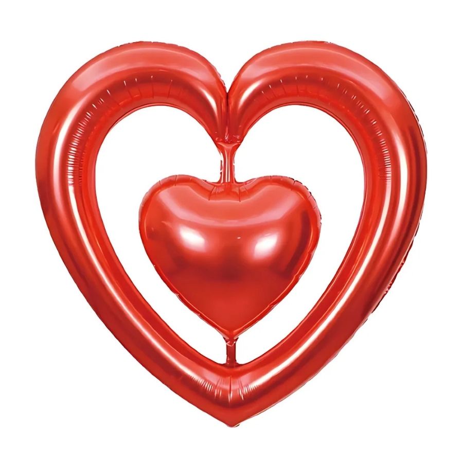 Balão metalizado duplo coração, 39" (100cm), ideal para criar cenários inesquecíveis e românticos em qualquer celebração.