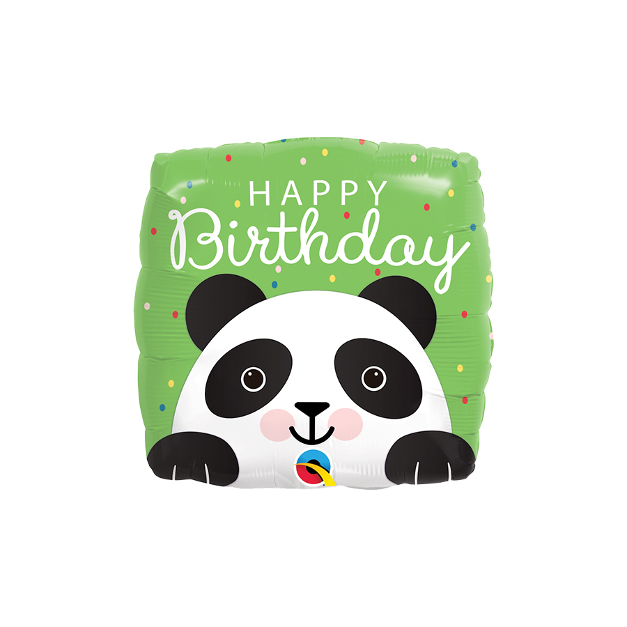 Balão microfoil no modelo quadrado Happy Birthday (Feliz Aniversário) Panda.