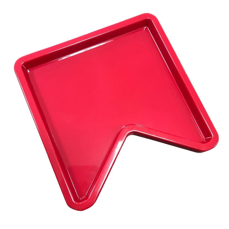 Bandeja bandeirinha na cor vermelha, medindo 19x19cm, ideal para servir doces, salgados ou decorar mesas em festas e eventos. Sua cor intensa valoriza a apresentação com um toque vibrante e festivo.
