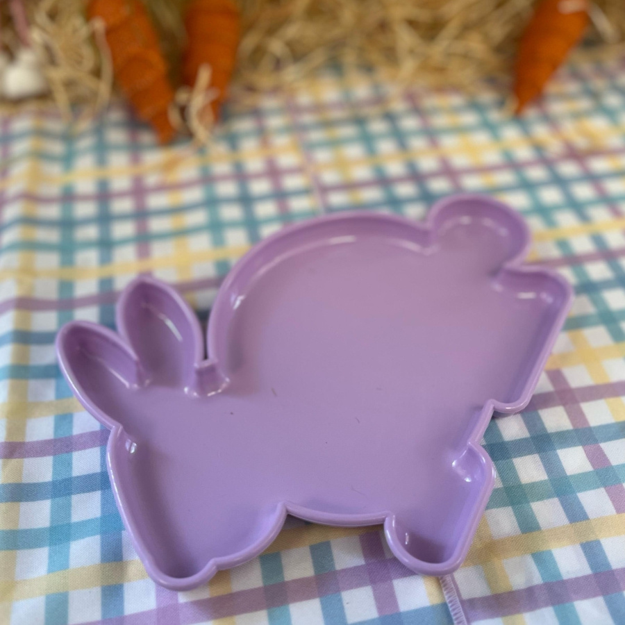 Bandeja Decorativa de Páscoa Coelho Lilás 24cm, um item delicado e elegante para enriquecer sua decoração pascal.