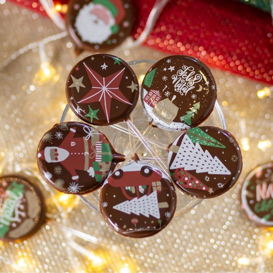 O Blister Decorado com Transfer Para Chocolate - Pirulito - BLN 0204 é ideal para produzir pirulitos de chocolate decorados com charme e o brilho do Natal. O conjunto possui 5 cavidades e já vem com palitos inclusos, prontos para o uso. Cada cavidade conta com estampas natalinas variadas, que são transferidas diretamente para o chocolate durante o preparo, criando um visual colorido, alegre e sofisticado. O resultado são pirulitos lindos e prontos para serem usados como lembrancinhas, presentes ou itens decorativos.