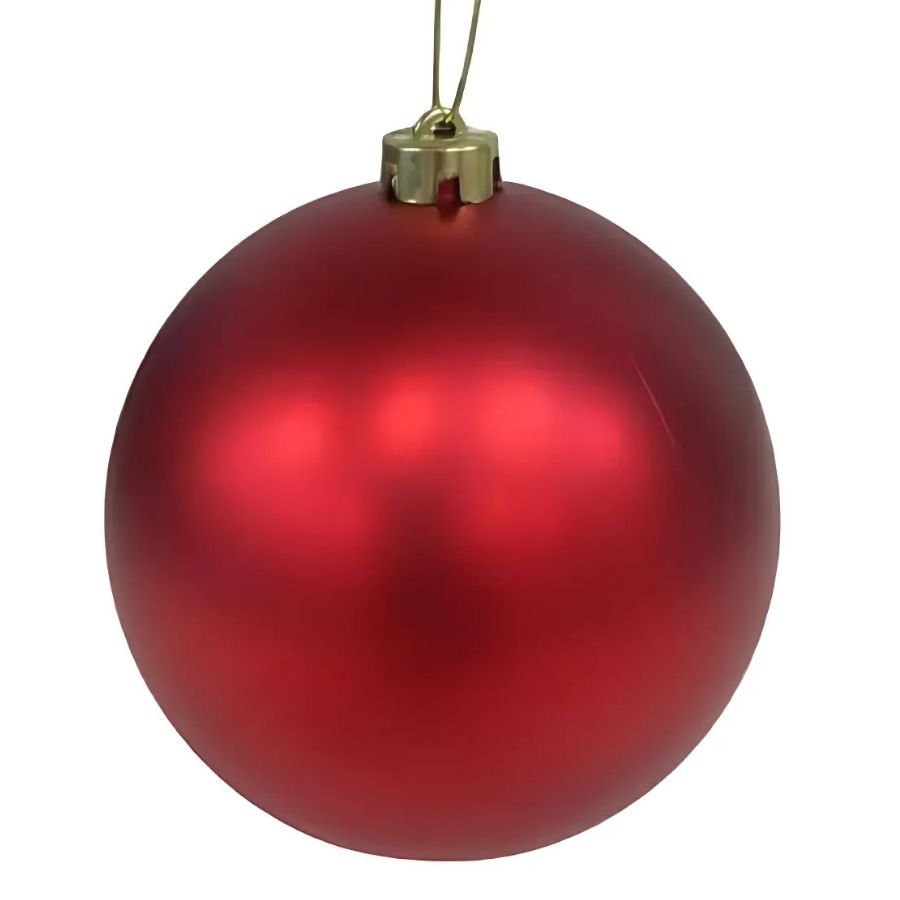 Bola de Natal fosca vermelha de 20cm, perfeita para compor decorações modernas e tradicionais. Leve, resistente e com acabamento sofisticado.