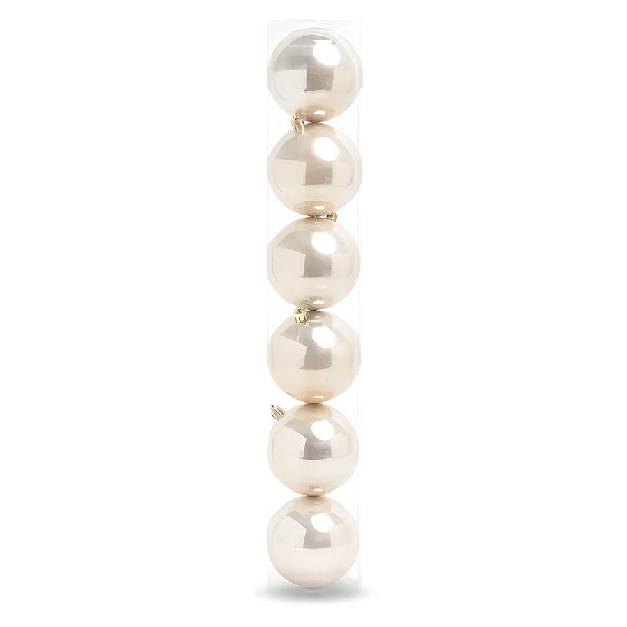 O Tubo de Bolas Peroladas de Natal na cor Champagne contém bolas de 10cm com acabamento perolado, ideais para pendurar e decorar sua árvore de Natal ou outros espaços festivos. Com um tom sofisticado de champagne e um brilho elegante, essas bolas proporcionam um toque refinado e festivo à sua decoração natalina.