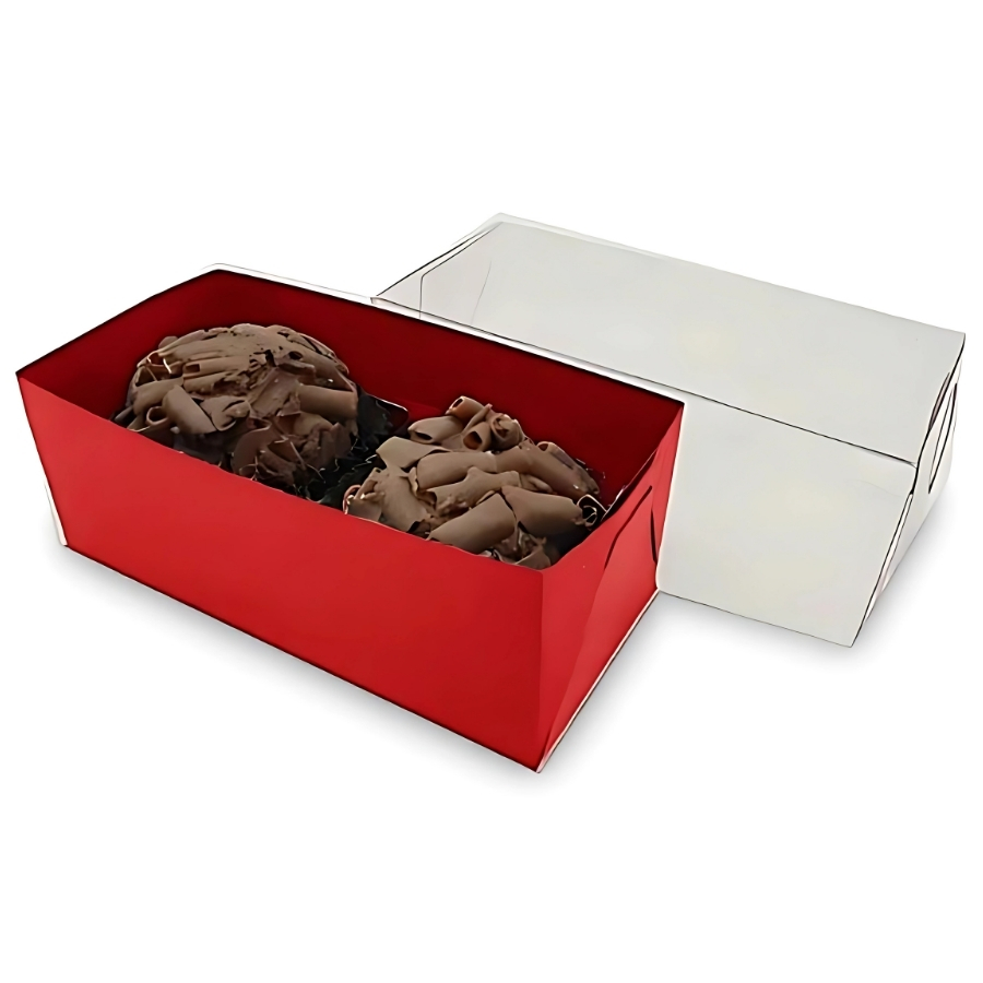 A embalagem mede 8x4x3 cm, sendo confeccionada em papel cartão vermelho no fundo e tampa em PVC cristal transparente. Estrutura leve, firme e de encaixe simples, proporciona segurança no transporte e visibilidade total do conteúdo. Ideal para doces unitários ou duplos, lembrancinhas ou brindes pequenos. O formato retangular compacto permite empilhamento e excelente aproveitamento de espaço.