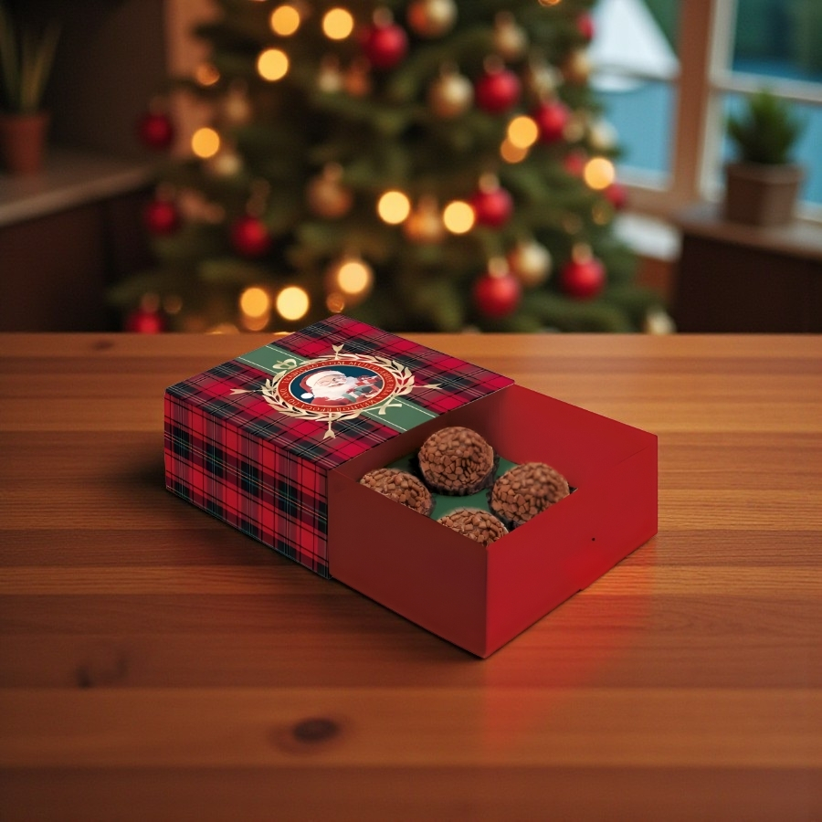 Perfeita para doces, brigadeiros, trufas ou bombons, esta caixa une praticidade e charme. O puxador facilita o manuseio, enquanto a estampa natalina do tema Magia Infinita agrega um toque festivo, tornando a apresentação dos doces ainda mais encantadora.