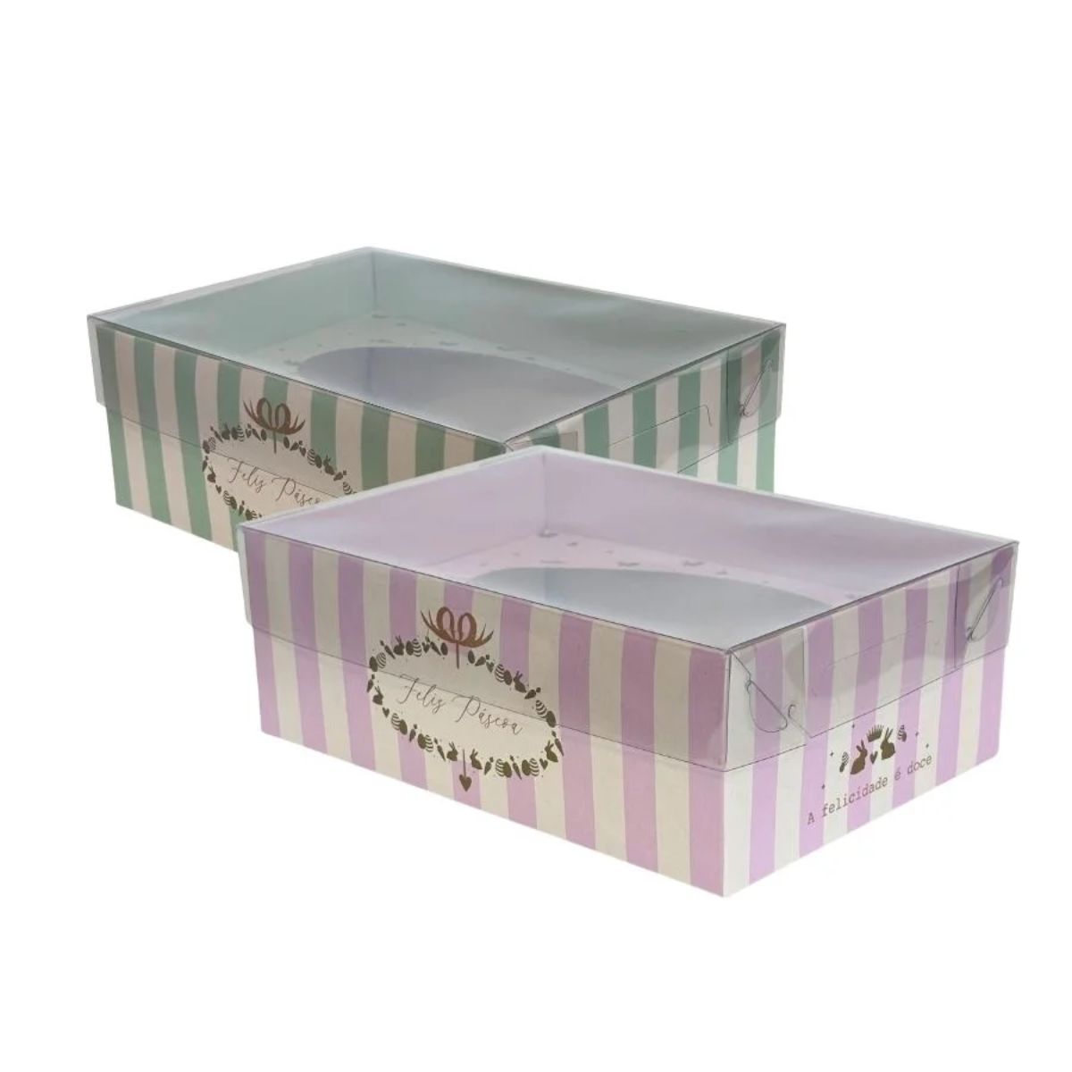 A Caixa New Practice para Meio Ovo – Quinn Composê é uma embalagem charmosa e delicada, perfeita para apresentar seus ovos de colher de maneira elegante e profissional. Seu tom de roxo clarinho, combinado com listras brancas e detalhes em dourado, cria uma estética moderna e sofisticada que valoriza imediatamente o produto. A tampa em acetato transparente permite visualizar o conteúdo com clareza, destacando o cuidado e a qualidade da sua produção artesanal.