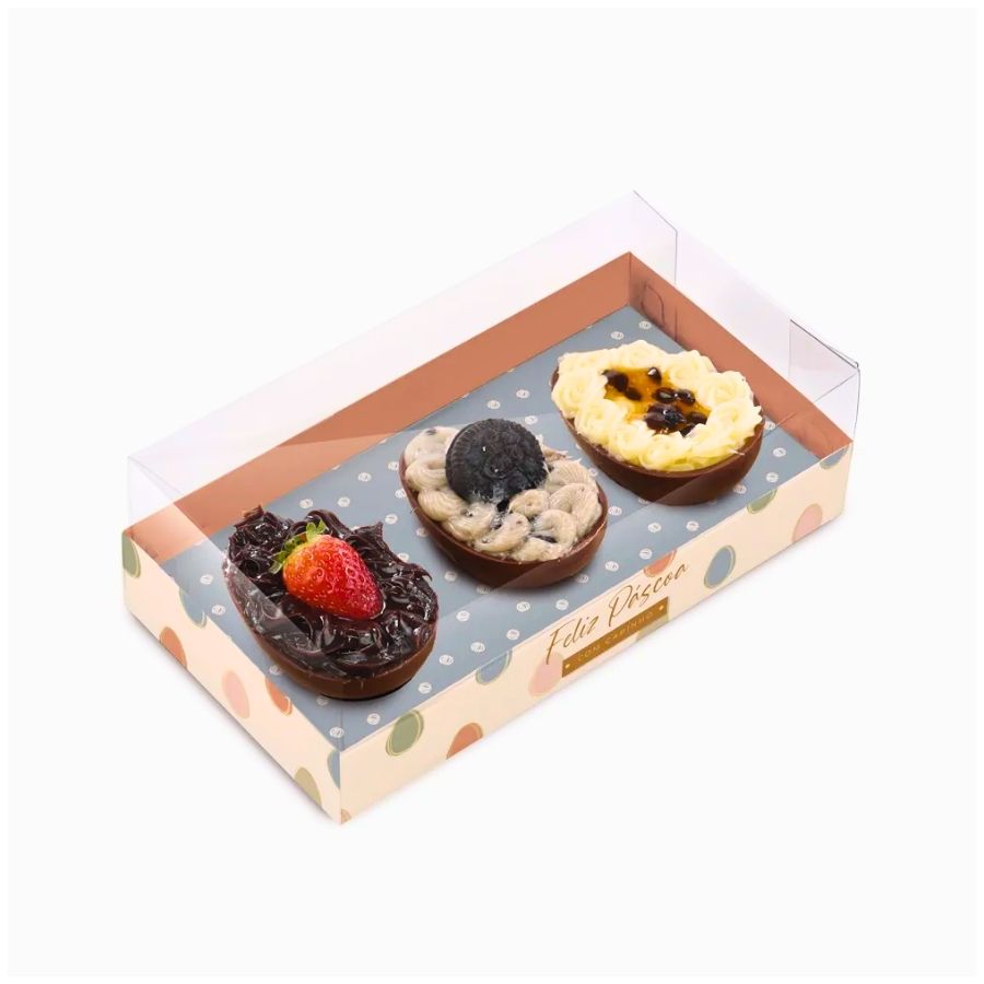 A Caixa para 3 Meios Ovos 50g Tonal une funcionalidade e estilo, sendo a escolha certa para valorizar seus produtos nesta Páscoa.