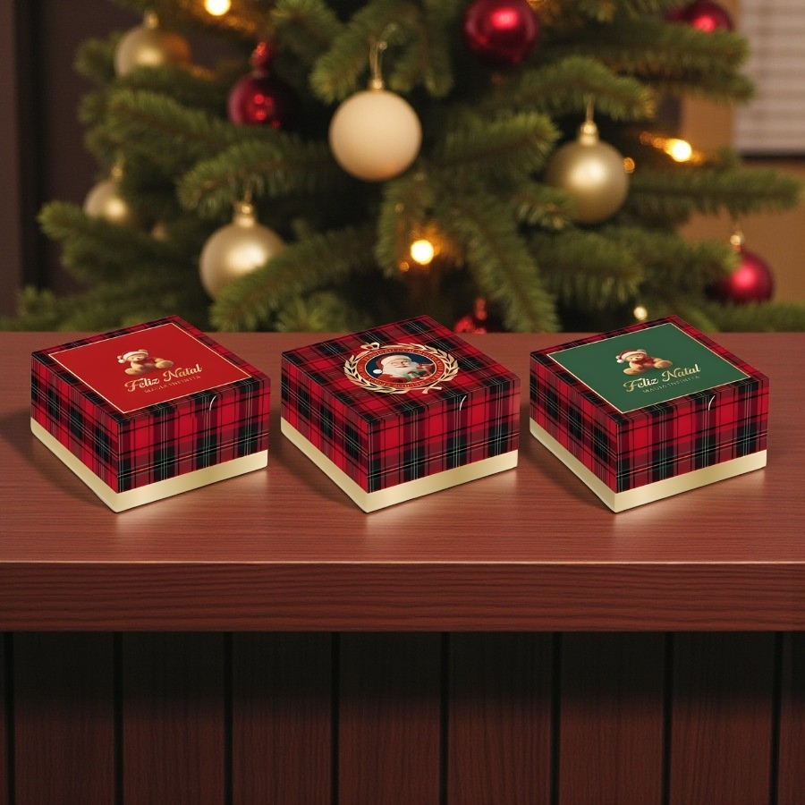 A Caixa para Brigadeiros Magia Infinita é produzida em papel cartão resistente, com acabamento de alta qualidade e estampa natalina detalhada. Disponível em tamanhos variados, é ideal para brigadeiros, trufas, bombons e outros doces finos, tornando-se uma opção prática e sofisticada para presentes e lembranças natalinas.