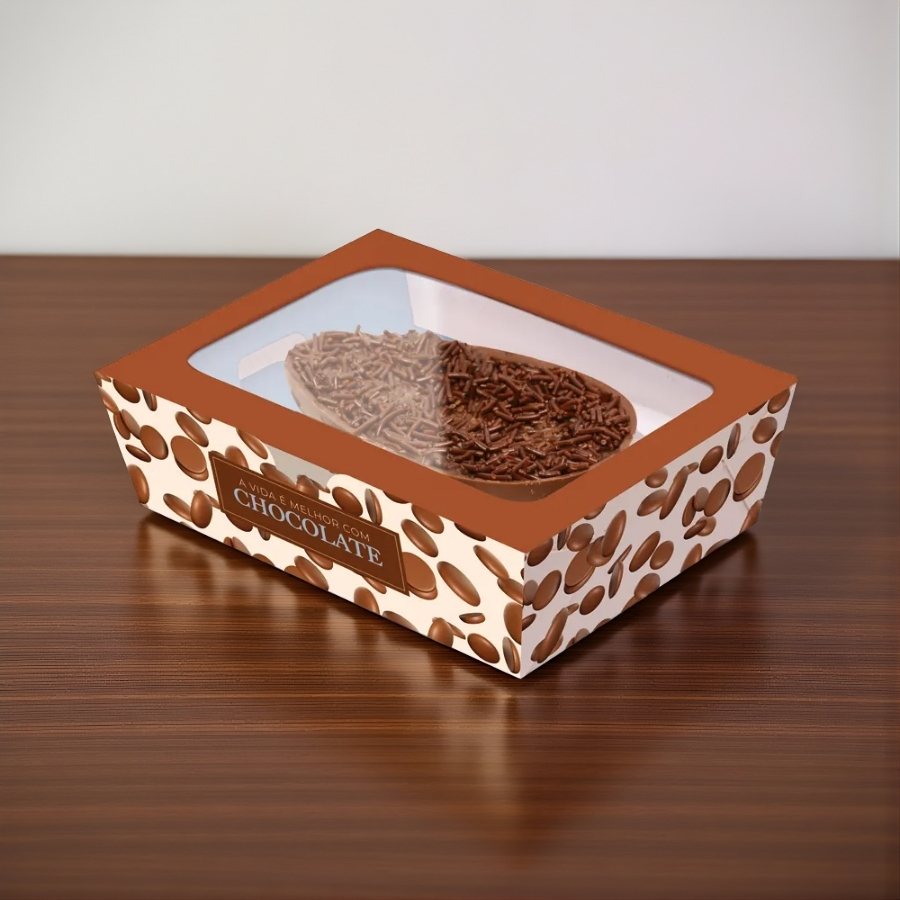 Ideal para confeitarias, chocolaterias e empreendedores, essa embalagem une beleza e funcionalidade, sendo fácil de montar e segura para o transporte. É uma excelente escolha para quem busca embalar seus produtos com qualidade e estilo profissional.