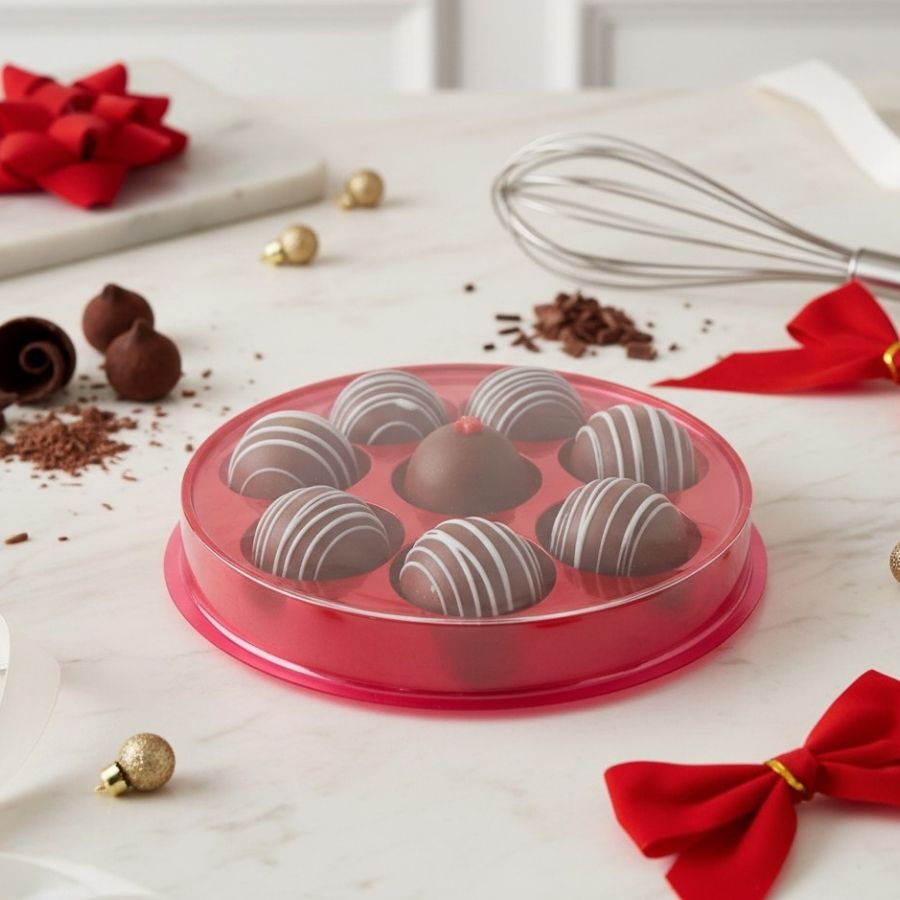 Caixa Redonda para Bombons de Acetato Com 8 Cavidades - Vermelho - Ref.14082 - 10 unidades - BWB - Rizzo