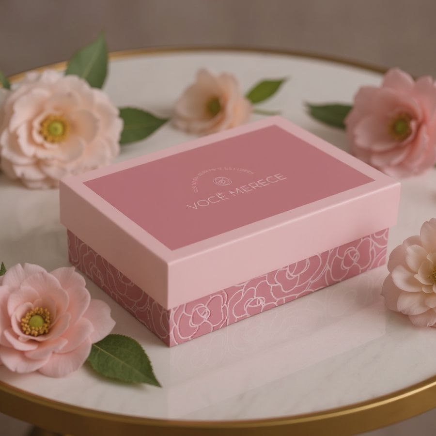 Caixa Retangular com Tampa - Petit Camélia, prática, resistente e sofisticada, ideal para presentes, lembranças e kits personalizados com velas, sabonetes, chocolates ou mini aromatizadores.