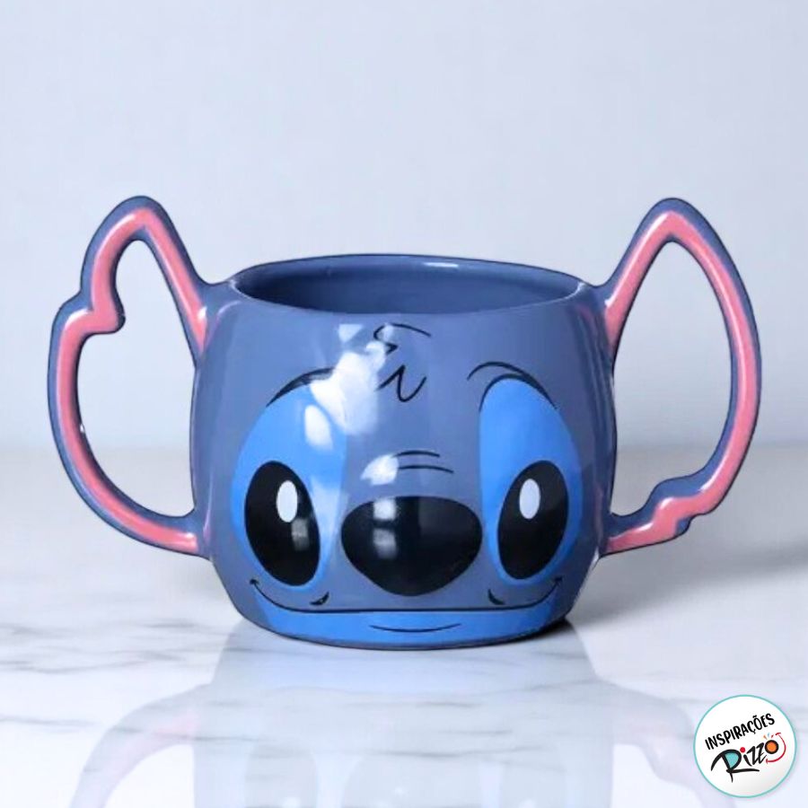 Caneca de cerâmica em formato Stitch licenciada Disney.