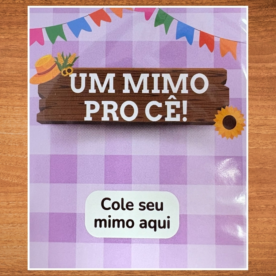 Ideal para festas juninas, arraiás, quermesses e eventos temáticos, o Cartão "Um Mimo Pro Cê" é versátil e fácil de combinar com diversas lembranças. Seja para presentear convidados, clientes ou amigos, ele transmite carinho e atenção aos detalhes, tornando cada mimo ainda mais especial.