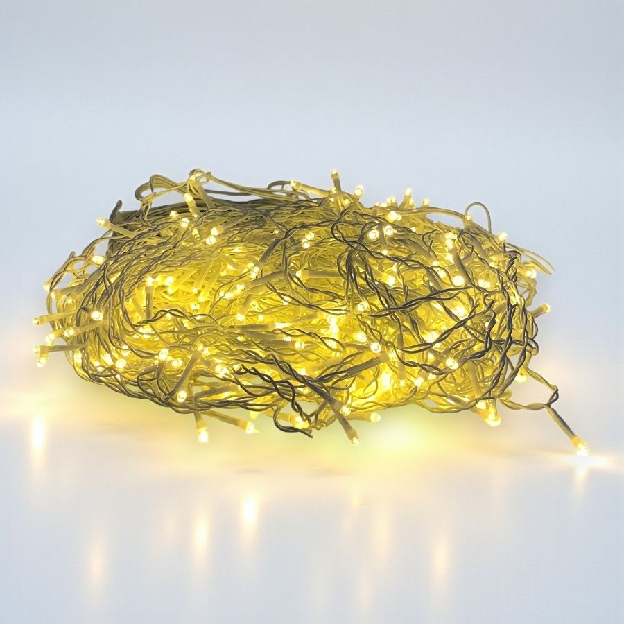 Cascata de LED branco quente com 400 lâmpadas em 10 metros de fio branco, luz fixa, feita em plástico e componentes elétricos, ideal para decorações de festas, casamentos, vitrines e ambientes aconchegantes.