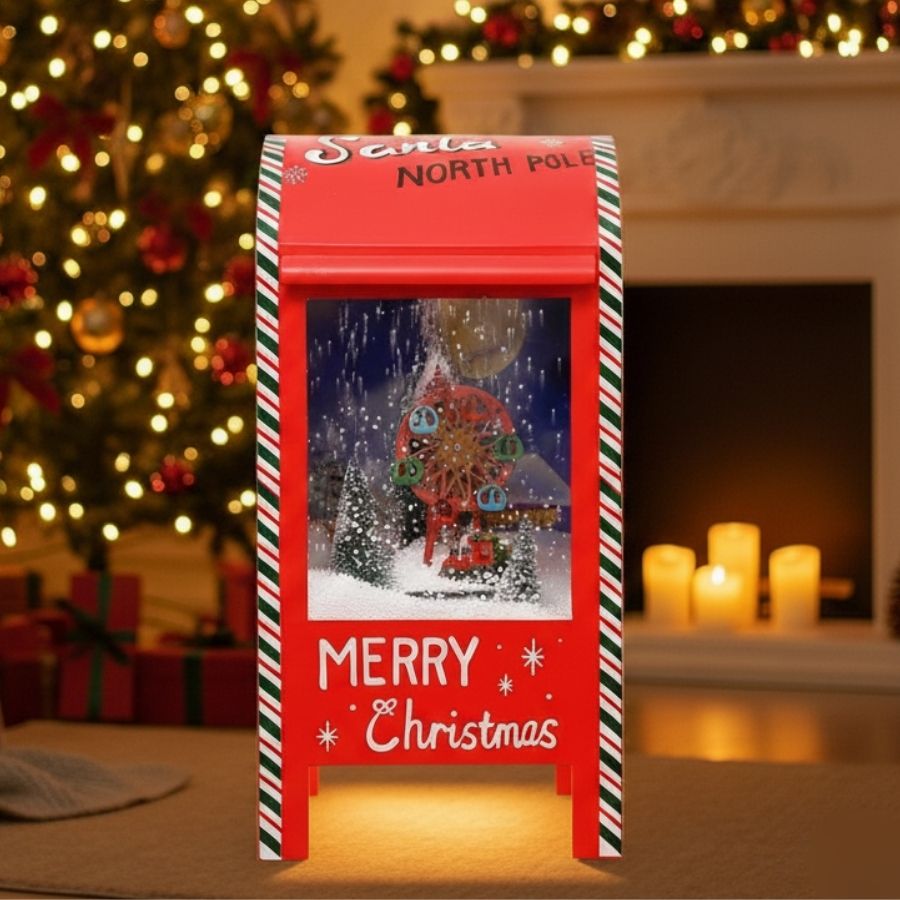 Caixa postal natalina com roda gigante 22x44,5x22cm, ideal para decorações criativas, lúdicas e encantadoras.