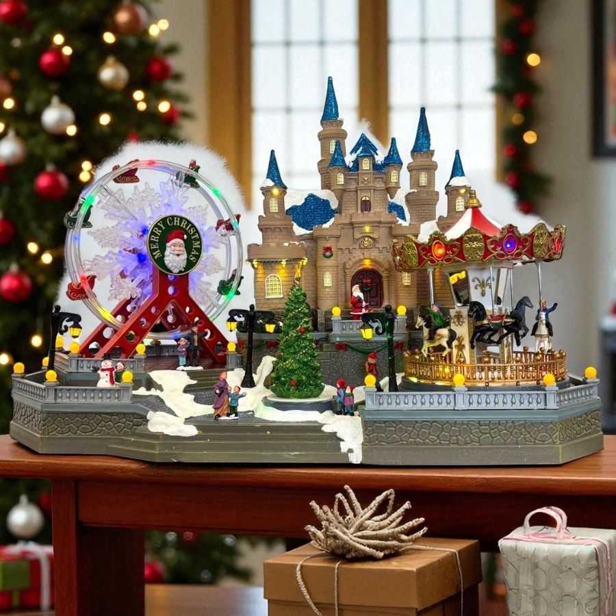 Cenário de Natal - Carrossel e Roda Gigante com Som, Luz e Movimento - 59x37x47cm é uma peça decorativa grandiosa e sofisticada, perfeita para transformar qualquer ambiente em um verdadeiro espetáculo natalino. Com design detalhado de carrossel e roda-gigante, o cenário conta com luzes, som e movimento, criando uma atmosfera mágica que encanta crianças e adultos.