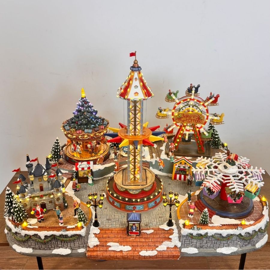 O Cenário de Natal - Parque de Diversão com Som, Luz e Movimento - 94x65x60,5cm é uma peça imponente e espetacular que transforma qualquer ambiente em um verdadeiro mundo mágico natalino. Com movimento realista, luzes vibrantes e som temático, este cenário grandioso reproduz um parque de diversões iluminado, repleto de detalhes encantadores que celebram o espírito alegre e festivo do Natal.
