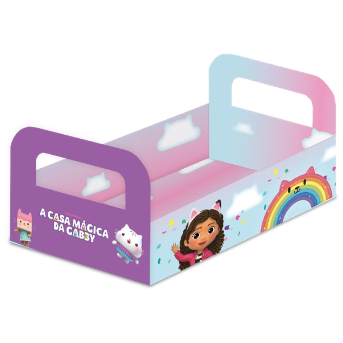A Cesta de Papel Cartão – A Casa Mágica da Gabby – 18x12,5x5cm é um item encantador para complementar a decoração da festa com praticidade e muito charme. Com artes coloridas inspiradas no universo mágico da Gabby e seus gatinhos, a peça traz um visual delicado, divertido e cheio de fantasia, perfeito para deixar a mesa ainda mais especial. Seu tamanho é ideal para organizar doces, distribuir lembrancinhas ou compor cenários temáticos.