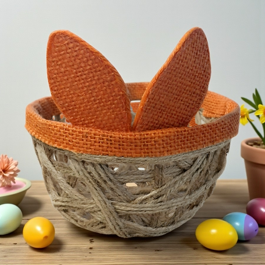 A Cesta Decorativa Para Páscoa - Orelhas de Coelho Laranja - 13x7x13cm é a escolha ideal para quem deseja criar arrumações temáticas delicadas e bem finalizadas sem esforço. Seu formato compacto e o design com orelhas de coelho em tom laranja tornam a peça perfeita para compor mesas decoradas, apresentações de doces e pequenos ovos, além de kits personalizados. Ela resolve a dificuldade de encontrar um item pronto, bonito e funcional para complementar a decoração pascal com charme e praticidade.