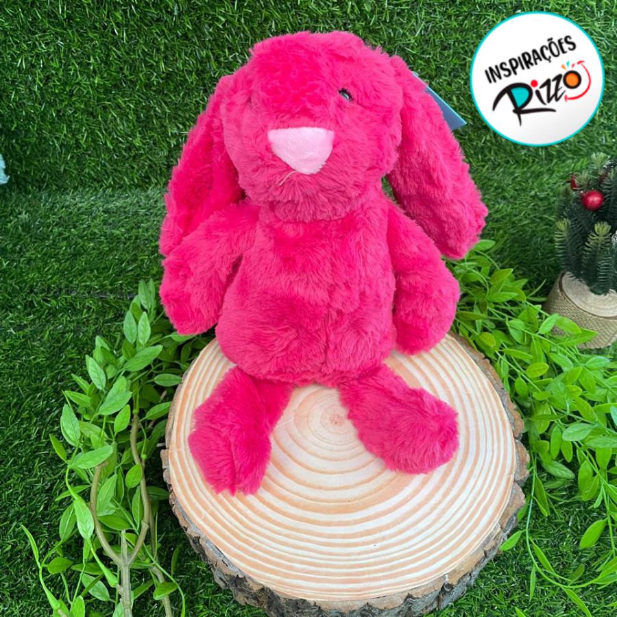 Coelho de pelúcia pink, medindo 30 cm. Um enfeite vibrante e encantador para a decoração de Páscoa.