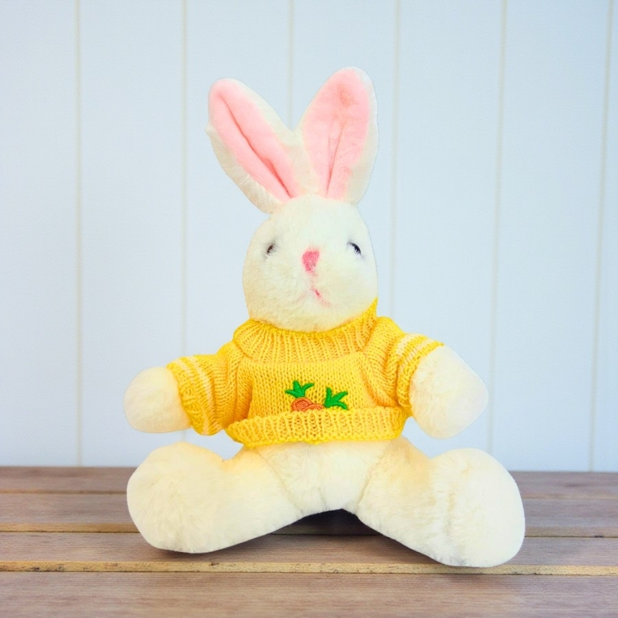 Indicado para quem deseja um presente carinhoso ou um enfeite diferenciado, este coelho resolve a necessidade de combinar beleza, qualidade e versatilidade em uma única peça. Ele se destaca em mesas, prateleiras ou cantinhos temáticos, sendo perfeito para aniversários, Páscoa, chás de bebê ou decorações personalizadas. O suéter amarelo garante um toque de alegria e sofisticação.