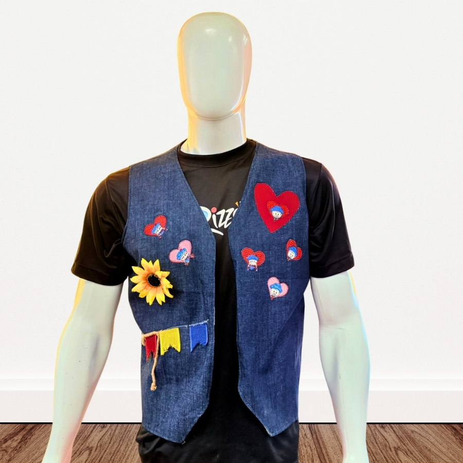 Colete masculino tamanho G, estilo Festa Junina, confeccionado em material resistente e confortável. Ideal para completar fantasias, roupas temáticas e trajes para eventos culturais.