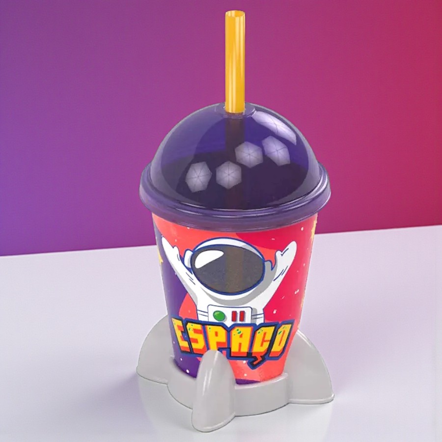 Copo Foguete com Tampa e Canudo com capacidade de 280ml é um modelo shake criativo em formato de foguete, ideal para deixar o momento das bebidas mais divertido. Possui tampa modelo bolha e canudo reutilizável, com estampa de astronauta que estimula a imaginação e o encanto pelo espaço. Um item funcional e cheio de beleza, perfeito para o dia a dia, passeios ou festas com tema espacial.
