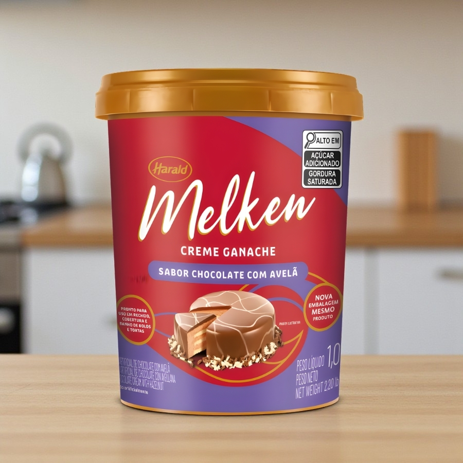 O Creme Ganache Melken Sabor Chocolate com Avelã 1kg é um produto pronto para uso, com textura lisa e cremosa, ideal para aplicação em diversas receitas de confeitaria. Pode ser utilizado em temperatura ambiente ou levemente aquecido, proporcionando acabamento perfeito e sabor marcante.