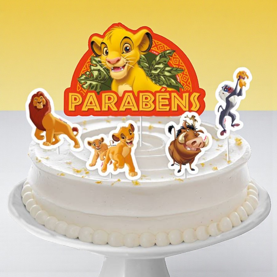 Decoração de Bolo Rei Leão Disney é o toque perfeito para deixar a mesa de doces ainda mais encantadora. Composta por 5 figuras, sendo uma principal e 4 complementares, cada peça vem com palito para fixar no bolo ou em pequenos doces. Inspirada no Rei Leão Disney, transforma a decoração em uma experiência lúdica e temática, combinando beleza e praticidade em cada detalhe.