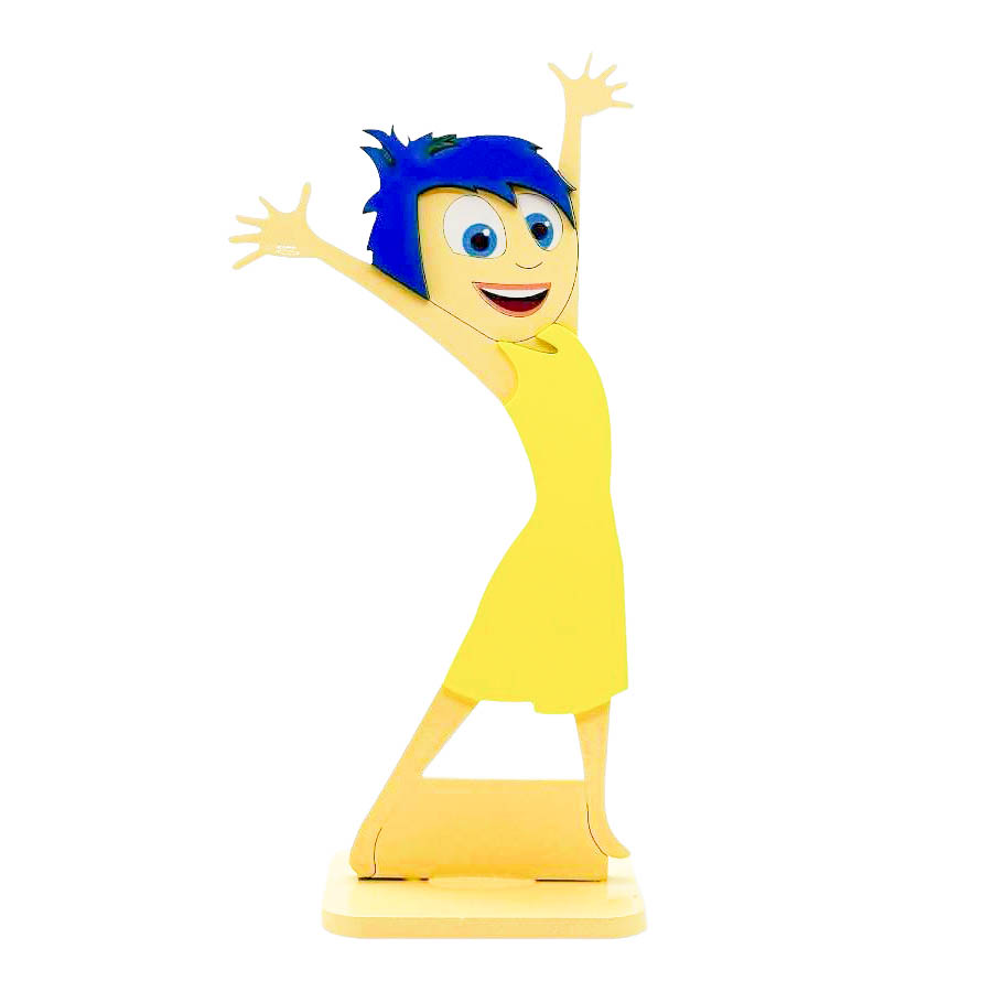 Este enfeite em MDF exibe a personagem Alegria, uma das emoções do filme "Divertidamente 2". O display é elaborado para capturar a essência vibrante e positiva da personagem, refletindo seu visual radiante e seu papel como a fonte de felicidade no filme.