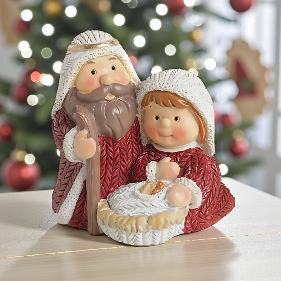 A Decoração de Natal em Resina - Sagrada Família - Vermelho - 4,5x4,5x3cm é ideal para quem busca uma peça natalina compacta e significativa. Com acabamento em vermelho vibrante, esta pequena decoração transmite o espírito do Natal e é perfeita para complementar presépios, aparadores ou prateleiras, trazendo fé e charme aos espaços reduzidos.