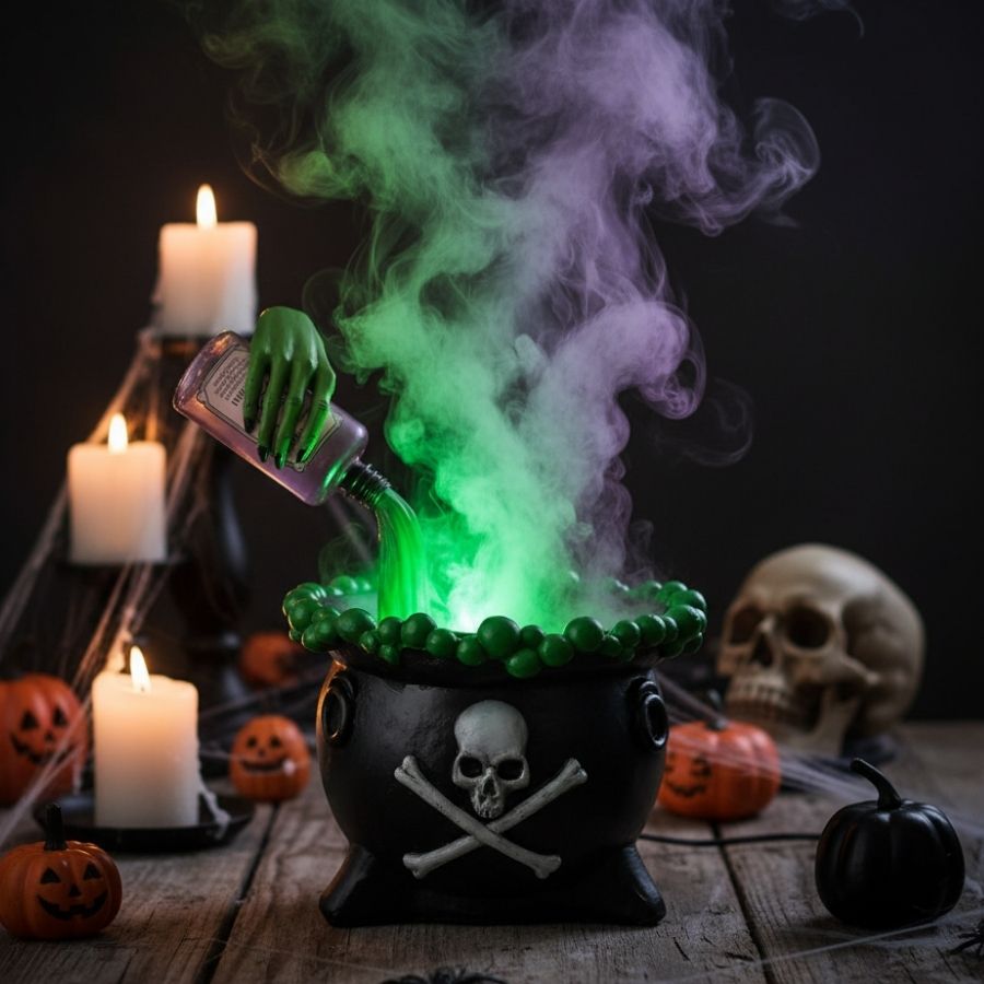 Com design detalhado de caveira e caldeirão de feitiços, este enfeite é ideal para quem deseja montar cenários de Halloween envolventes. O efeito de fumaça combinado com iluminação interna cria um destaque visual único, perfeito para mesas centrais, entradas ou áreas de destaque. É compatível com outras decorações de bruxas, poções, morcegos e teias de aranha, permitindo composições criativas e imersivas. Um item indispensável para artesãos, lojistas e pequenos produtores que querem valorizar suas criações com decoração temática de alta qualidade.