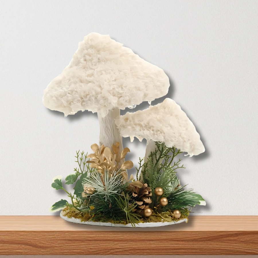 Indicado para residências, vitrines, lojas, arranjos e decorações personalizadas, esse cogumelo decorativo é perfeito para complementar composições natalinas, temáticas ou artesanais. Seu acabamento em tom bege garante versatilidade, combinando com diferentes estilos de ambiente.