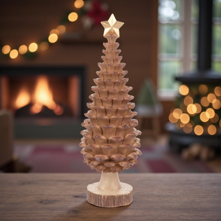 A Árvore Decorativa de Natal em Madeira com Base Rústica possui 34,7x10,5cm, confeccionada em madeira de qualidade com acabamento natural. Indicada para decoração interna de Natal, garante destaque visual, praticidade e durabilidade.