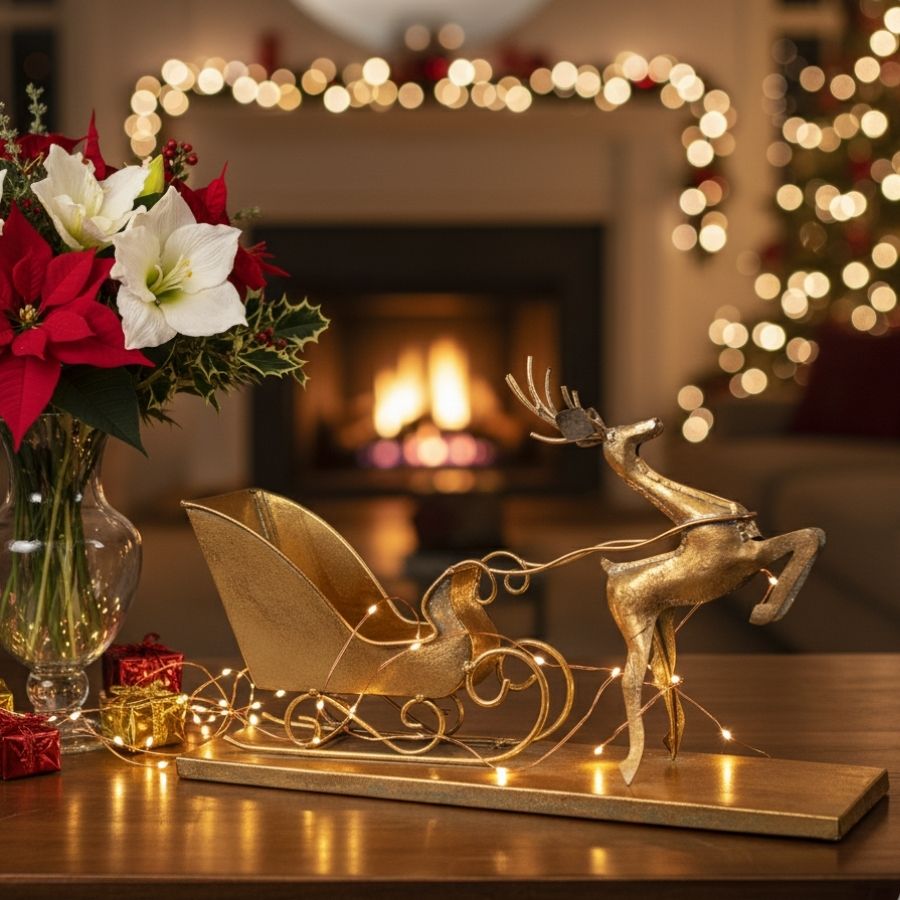 Posicione o enfeite no local desejado, como mesas, estantes, aparadores ou vitrines, sozinho ou combinado com outros itens de decoração de Natal. Guarde em local seco e arejado após o uso para manter a durabilidade e o acabamento dourado.