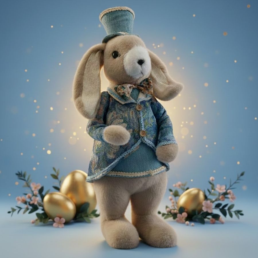 Com visual encantador e toque clássico, o Coelho em Pé da Linha Realeza Premium é perfeito para artesãos, decoradores e pequenos produtores que desejam elevar o nível de suas criações de Páscoa. A peça harmoniza facilmente com flores artificiais, caixas decoradas, embalagens temáticas, laços, fitilhos e arranjos luxuosos, permitindo combinações elegantes que valorizam qualquer projeto. Seu acabamento bordado e figurino elaborado agregam exclusividade, tornando-o um elemento-chave para cenários fotográficos, mesas decoradas, kits presenteáveis e composições premium que buscam transmitir charme e requinte.