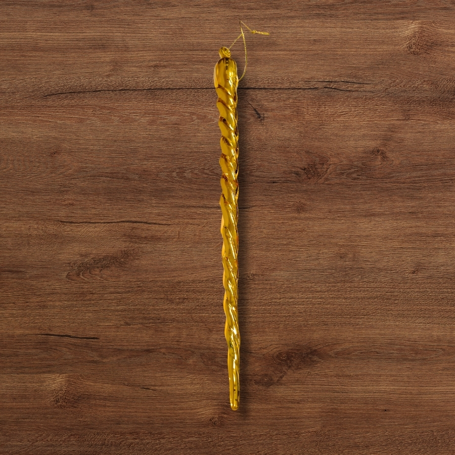 Enfeite para pendurar em árvore ou decoração de Natal, no formato de estalactite espiral, com acabamento em ouro. Mede 28,5x2x2cm, é leve, resistente e fácil de aplicar, ideal para criar efeitos sofisticados e elegantes em ambientes internos.