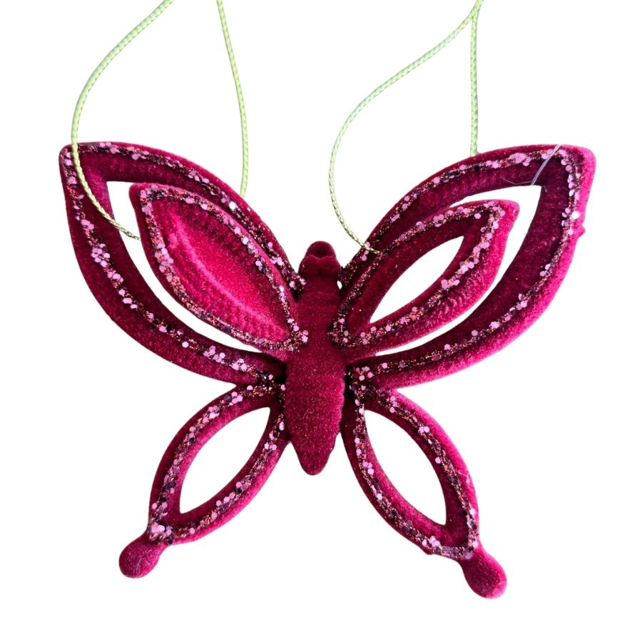 O Enfeite Para Pendurar de Natal Borboleta Glitter Vinho é resistente, elegante e perfeito para decorações natalinas sofisticadas, delicadas e brilhantes.