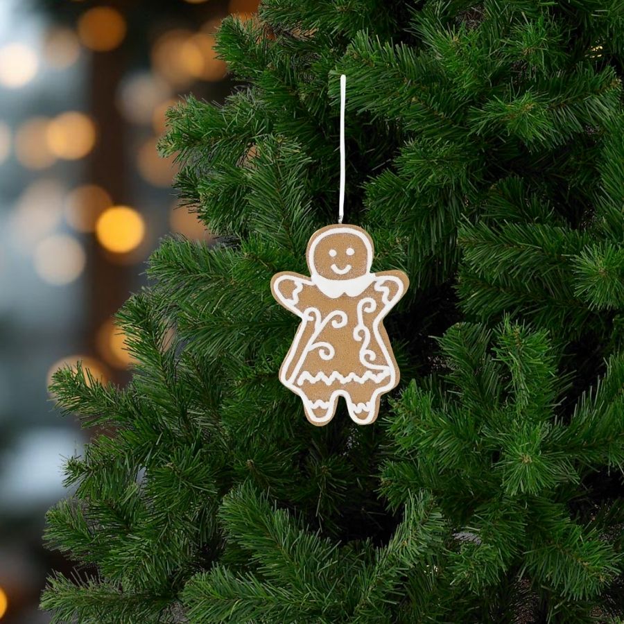 Enfeite de Natal em biscuit, Ginger Bread Menina, 11cm, ideal para pendurar em árvores e arranjos, oferecendo charme artesanal e toque lúdico à decoração natalina.