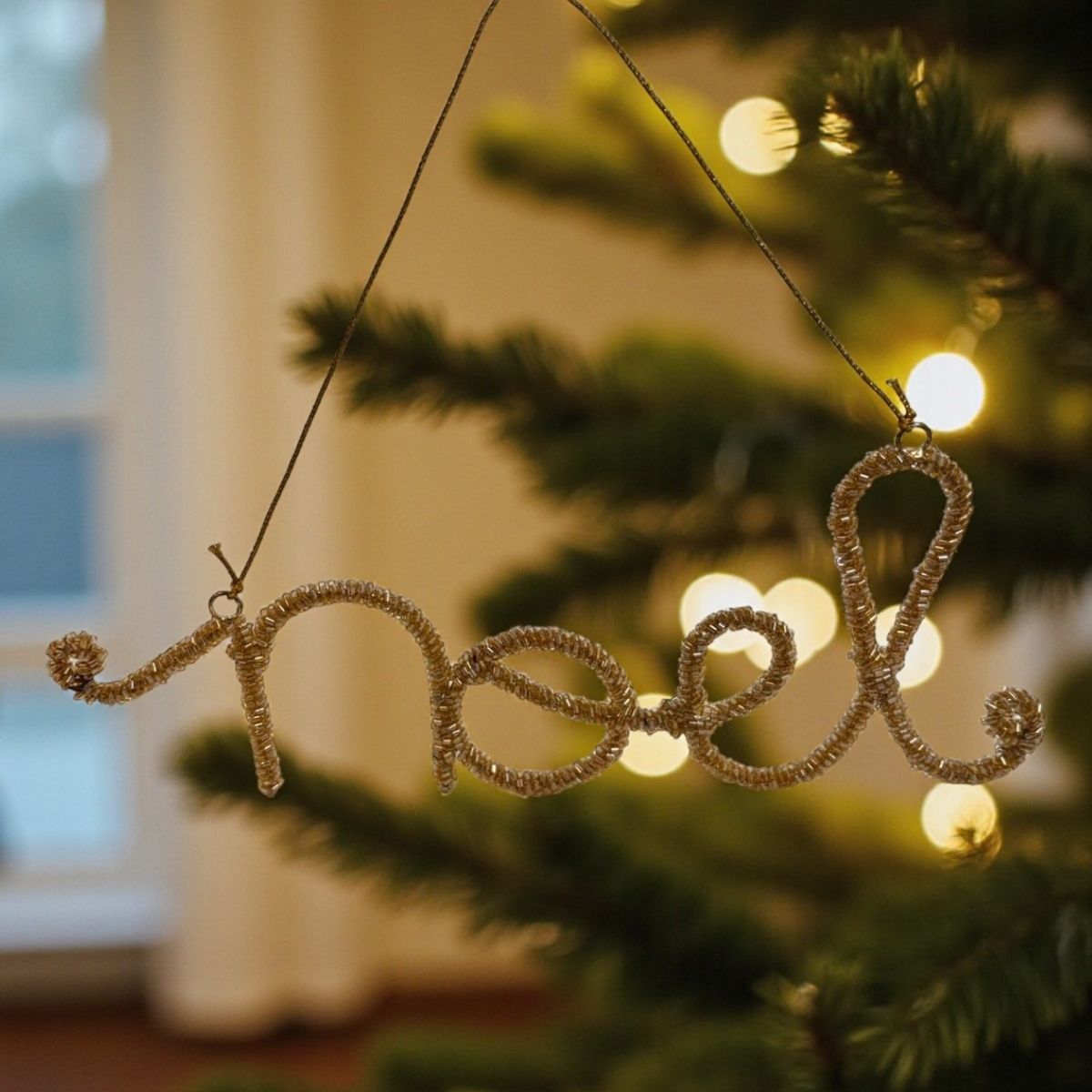 O Enfeite Para Pendurar de Natal - “Noel” é uma peça elegante e reluzente que traz o verdadeiro espírito natalino para sua decoração. Produzido com miçangas douradas cuidadosamente aplicadas, forma a palavra “Noel” em um design delicado e festivo. Seu brilho sutil reflete a luz das árvores e guirlandas, adicionando um toque sofisticado e encantador aos ambientes.