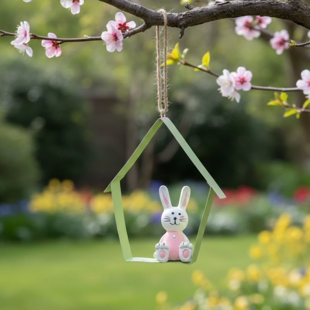 Use o enfeite de páscoa para pendurar em portas, paredes ou guirlandas para criar um detalhe delicado na decoração. Combine com outros enfeites de coelho, ovos decorativos e elementos temáticos para uma composição harmoniosa. Também pode ser utilizado em árvores decorativas ou em arranjos suspensos para valorizar o ambiente.