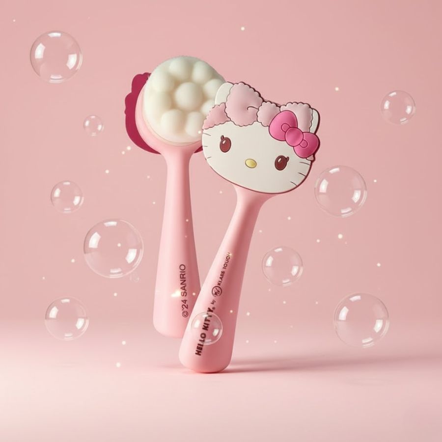 Escova De Limpeza Facial Hello Kitty para limpeza profunda e esfoliação suave, ideal para skin prep profissional.