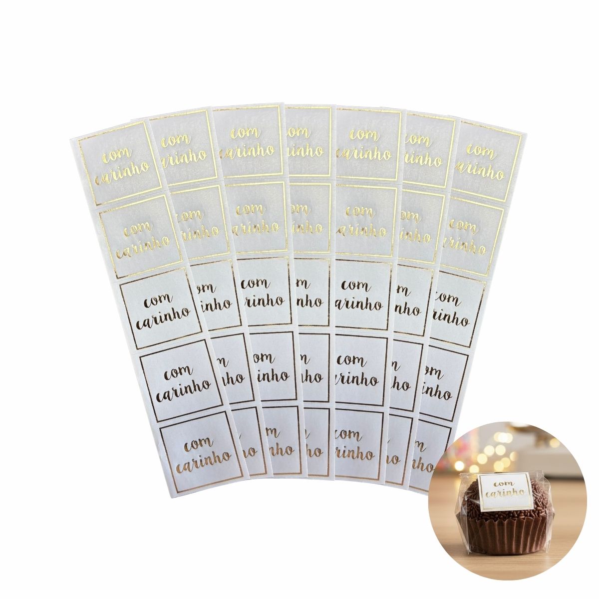 As Etiquetas Artesanais “Com Carinho” são ideais para dar um toque especial e delicado às embalagens e criações manuais. Na cor branca, elas possuem o texto em destaque acompanhado de um detalhe na borda em dourado, garantindo um visual elegante, clean e cheio de charme.