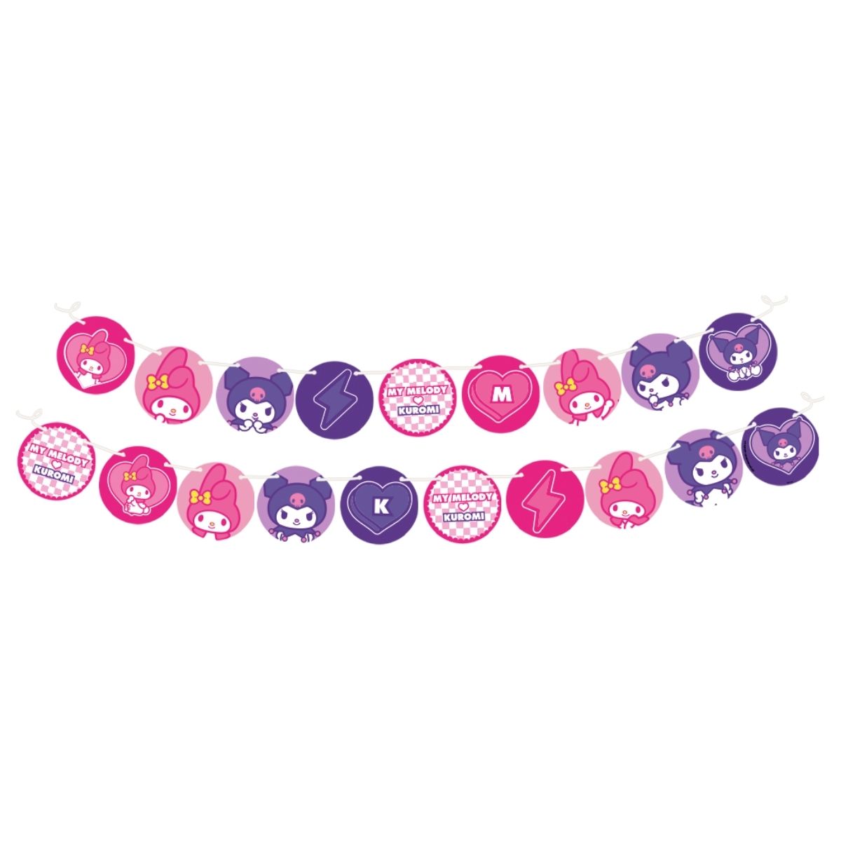 A Faixa Decorativa – My Melody e Kuromi – 130cm é o toque perfeito para deixar sua festa ainda mais fofa, colorida e cheia da personalidade das personagens My Melody e Kuromi. Todas as peças são redondas, trazendo ilustrações adoráveis das personagens, além de corações e elementos kawaii que deixam qualquer ambiente mais encantador. Ideal para aniversários infantis, festas temáticas Sanrio e celebrações cheias de doçura.