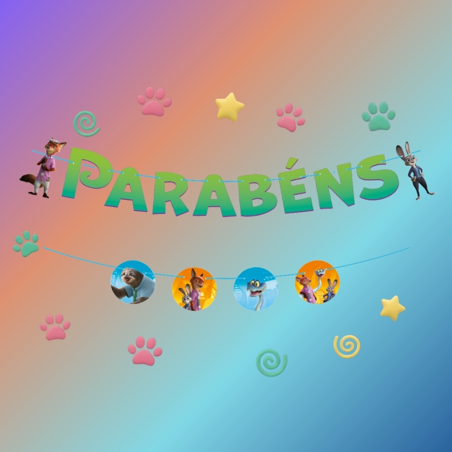 A Faixa Decorativa “Parabéns” Zootopia 2 traz toda a energia vibrante, divertida e cinematográfica do novo filme da Disney para a sua festa. Com 130x15cm, ela combina cores marcantes e arte oficial dos personagens, deixando o ambiente instantaneamente temático e envolvente. Ideal para decorar paredes, mesas principais ou painéis fotográficos, criando o clima perfeito para uma celebração cheia de aventura.